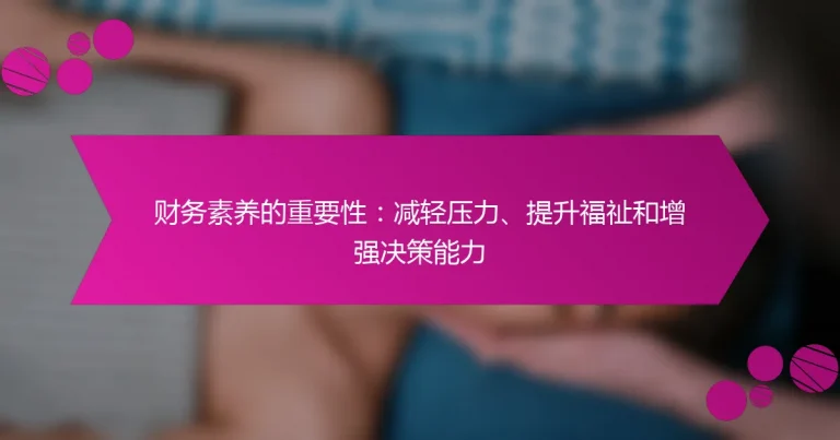 金融教育对减轻压力、提升福祉和建立信心至关重要。它提高了财务素养,从而促进更好的决策和情感韧性。理解预算和投资有助于财务稳定和安全。个性化学习和持续支持进一步赋予个人实现财务目标的能力,促进整体个人发展。 金融教育如何影响压力水平? 金融教育通过提高财务素养和信心显著降低压力水平。理解预算、储蓄和投资的个人在面对财务不确定性时感到的焦虑较低。研究表明,金融教育能改善决策能力,增强个人对财务的掌控感。因此,这种知识促进了情感健康和抵御与财务不稳定相关的压力的能力。 财务素养的心理影响是什么? 财务素养通过减少压力和建立信心显著提升心理健康。拥有财务知识的个人报告与财务管理相关的焦虑水平较低。这种赋权感增强了对生活环境的掌控感,从而改善心理健康结果。研究表明,金融教育项目可以将财务压力降低多达30%,显示出财务素养对情感韧性的独特影响。因此,提升的财务技能对整体个人发展和生活满意度产生积极贡献。 预算技能如何减少财务焦虑? 预算技能通过提供对个人财务的清晰和控制显著减少财务焦虑。通过制定预算,个人可以跟踪收入、支出和储蓄,从而做出明智的财务决策。这种结构化的方法增强了信心,减少了不确定性,而这些都是财务压力的关键因素。研究显示,定期制定预算的个人报告与财务管理相关的焦虑水平较低。此外,建立预算有助于识别不必要的支出,从而更好地分配资源用于储蓄和投资,最终促进财务健康。 您可以采取哪些步骤来制定个人预算? 要制定个人预算,请遵循以下基本步骤。首先,通过列出所有收入来源来评估您的收入。接下来,跟踪您的支出以识别消费模式。然后,将支出分类为固定和可变成本。之后,设定与您的收入和价值观相符的现实财务目标。最后,定期审查和调整您的预算,以保持进度并增强财务健康。 财务知识在决策中扮演什么角色? 财务知识在决策中扮演着至关重要的角色,通过增强信心和减少压力来实现。它使个人能够就预算、投资和储蓄做出明智的选择。因此,拥有强大财务教育的人会体验到更好的福祉和对财务未来的更大控制感。研究表明,具有财务素养的个人更有可能采取主动的财务行为,从而获得更好的结果。这种财务知识的独特属性促进了个人发展中的安全感和稳定感。 理解债务管理如何缓解压力? 理解债务管理通过提供对财务的清晰和控制显著减少压力。有效的债务管理策略使个人能够制定预算、优先偿还和建立现实的还款计划。这种结构化的方法通过将压倒性的财务义务转化为可管理的任务来缓解焦虑。研究表明,积极参与债务管理的个人报告更高的财务信心和整体福祉。通过理解自己的财务状况,个人可以做出明智的决策,从而过上更安全、压力更小的生活。 金融教育为福祉提供了哪些独特的好处? 金融教育通过减少压力和建立信心显著提升福祉。理解财务原则有助于做出明智的决策,从而缓解对财务管理的焦虑。具有财务素养的个人更有可能制定并坚持预算,从而实现更好的财务稳定。这种稳定感促进了安全感,对整体心理健康产生积极影响。此外,金融教育使个人能够设定和实现财务目标,进一步增强他们的信心和生活满意度。 金融教育如何改善整体生活满意度? 金融教育通过减少压力、改善福祉和建立信心显著提升整体生活满意度。具备财务知识的个人能够做出明智的决策,从而实现更好的财务管理,减少对财务不稳定的焦虑。因此,他们体验到更大的内心平静和改善的心理健康。此外,财务素养促进了赋权感,使个人能够自信地追求个人目标和愿望。这种全面的个人发展方法最终有助于实现更充实的生活。 财务素养的长期健康益处是什么? 财务素养通过减少压力、提升福祉和建立信心提供长期健康益处。改善的财务知识导致更好的决策,从而减少与财务管理相关的焦虑。这种财务压力的减少对心理健康产生积极影响,促进整体生活满意度。此外,具有财务素养的个人更有可能参与主动的健康行为,例如定期体检和预防护理,进一步提升他们的福祉。财务素养高的个人还报告更高的信心,这可以转化为更好的关系和社会互动。 金融教育的哪些独特属性影响个人发展? 金融教育通过培养信心、减少压力和改善整体福祉来增强个人发展。情感智力和财务韧性等独特属性显著影响这些结果。情感智力使个人能够从容应对财务挑战,而财务韧性则在不确定的经济条件下促进适应能力。这些属性共同赋予个人做出明智财务决策的能力,最终促进个人成长和稳定。 金融教育如何在危机情况下建立韧性? 金融教育通过为个人提供管理财务挑战所需的基本技能和知识,在危机情况下建立韧性。理解预算、储蓄和投资策略在经济低迷期间减少压力,提升福祉。 当个人对财务原则有清晰的理解时,他们能够做出明智的决策,从而增强信心。例如,国家金融教育基金会的一项研究发现,受过财务教育的个人更有可能建立应急基金,这在危机时期充当缓冲。 此外,金融教育促进适应能力。个人学会重新评估财务计划并调整消费习惯,这在意外事件发生时至关重要。这种适应能力是财务素养的独特属性,直接有助于建立韧性。 总之,金融教育不仅减少压力,还提升整体福祉并增强信心,最终使个人能够有效应对危机。 哪些