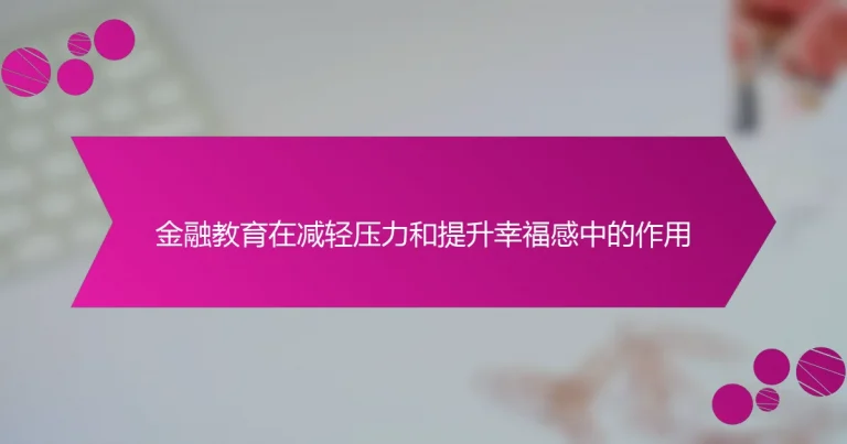 金融教育通过提高金融素养和决策能力,显著减少压力并增强幸福感。它建立了信心,使个人能够管理预算、理解投资和规划退休。研究表明,受过金融教育的个人经历较低的焦虑水平和更高的生活满意度。通过积极参与金融教育,个人能够更有效地应对经济挑战,实现长期稳定。 金融教育在减压方面的主要好处是什么? 金融教育通过增强金融素养、改善决策能力和培养控制感,显著减少压力。拥有金融知识的个人在与资金管理相关的焦虑水平上经历较低。例如,预算技能允许更好的规划,减少财务不确定性。此外,理解投资可以带来长期的财务安全,进一步缓解压力。最终,金融教育建立了信心,使个人能够主动应对财务挑战。 金融素养如何影响心理健康? 金融素养通过减少压力和建立信心,显著增强心理健康。具备金融知识的个人在与资金管理相关的焦虑水平上经历较低。研究表明,金融教育导致幸福感的提高,因为它使人们能够做出明智的决策。这种赋权感培养了控制感,最终增强了心理韧性。此外,金融素养有助于长期稳定,从而减轻财务担忧,支持整体心理健康。 预算在增强幸福感方面扮演什么角色? 预算在增强幸福感方面扮演着至关重要的角色,通过减少财务压力和促进稳定。一个结构良好的预算帮助个人跟踪收入和支出,从而做出明智的财务决策。这种做法培养了对财务的控制感,这与改善心理健康结果相关。研究表明,定期预算的个人报告较低的焦虑水平和更高的生活满意度。此外,预算鼓励储蓄,这可以在紧急情况下提供安全网,进一步增强整体幸福感。 有效的预算策略有哪些? 有效的预算策略包括跟踪支出、设定明确的财务目标和优先考虑储蓄。这些方法通过减少压力和建立信心来增强金融教育的好处。例如,一项2022年的研究发现,预算有效的个人经历了30%的财务焦虑减少。此外,使用预算应用程序可以简化跟踪,使遵循财务计划变得更容易。定期审查和调整预算培养了适应性,确保长期财务健康。 如何通过跟踪支出来缓解财务焦虑? 跟踪支出通过提供对支出的清晰和控制显著减少财务焦虑。这种做法使个人能够识别不必要的支出,从而培养更好的预算习惯。因此,人们体验到增强的财务信心,导致整体幸福感的改善。研究显示,跟踪支出的个人报告较低的压力水平和更强的财务安全感。通过了解自己的财务状况,他们能够做出明智的决策,减少与资金管理相关的不确定性和焦虑。 金融教育如何在财务决策中建立信心? 金融教育通过赋予个人知识和技能来建立财务决策中的信心。这种知识减少了与财务相关的焦虑,提升了幸福感。随着个人学习预算、储蓄和投资,他们变得更有能力做出明智的决策。一项研究发现,70%的金融教育受益者对自己的财务选择感到自信,展示了金融素养在培养自信方面的独特属性。最终,金融教育将压力转化为信心,促进更好的财务结果。 金融教育培养了哪些技能? 金融教育培养了增强财务信心、减少压力和改善整体幸福感的技能。个人学习预算、储蓄、投资和债务管理。这些技能赋予了明智决策的能力,促进了安全的财务未来。因此,金融素养导致自我效能感的提高和与资金管理相关的焦虑的减少。 理解信用如何影响财务信心? 理解信用显著提升财务信心,使个人能够做出明智的决策。关于信用评分、利率和贷款条款的知识减少了与借贷相关的焦虑。因此,个人在管理财务时感到更安全,从而改善整体幸福感。研究表明,金融素养与降低压力水平和更大的财务稳定性相关。 金融教育的哪些独特方面有助于长期幸福感? 金融教育通过增强财务信心、减少压力和促进明智决策,独特地促进长期幸福感。有效的金融教育使个人具备管理预算、理解投资和规划退休的技能。这种主动的知识培养了对财务状况的控制感,导致较低的焦虑水平。研究表明,拥有金融素养的个人经历了改善的心理健康和生活满意度。此外,持续的金融教育鼓励适应性行为,如储蓄和投资,进一步支持财务稳定和整体幸福感。 金融教育如何促进抵御经济衰退的韧性? 金融教育通过增强财务信心和减少压力,促进抵御经济衰退的韧性。具备金融知识的个人做出明智的决策,从而改善预算和储蓄实践。这种准备减轻了经济挑战的影响,使人们能够更有效地应对财务危机。研究表明,受过金融教育的个人在经济衰退期间经历较低的焦虑水平,有助于整体幸福感。通过培养主动的心态,金融教育赋予个人适应变化的经济条件的能力。 长期财务压力对健康的影响是什么? 长期财务压力可能导致各种健康问题,包括焦虑、抑郁和心血管问题。慢性压力影响身体的激素平衡和免疫反应,增加了患病的易感性。研究表明,面临财务困难的个人更可能经历心理健康障碍,影响整体幸福感。金融教育可以通过提高金融素养、增强信心和减少与资金管理相关的压力水平来减轻这些影响。 财务压力与慢性健康问题的相关性如何? 财务压力与慢性健康问题显著相关,导致焦虑和身体疾病的增加。研究表明,面临财务困难的个人报告高血压和抑郁等疾病的发生率更高。一项研究发现,财务压力可能加剧与压力相关的疾病,强调了金融教育在减轻这些影响中的重要性。通过提高金融素养,个人可以降低压力水平,最终改善整体健康和幸福感。 全面金融教育能带来哪些罕见